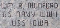Seaman Second Class Bill Munford saw much action in the U.S. Navy during World II. His ship, the USS Iowa, participated in numerous campaigns including Asiatic-Pacific Campaign, Philippine Liberation.