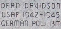 Dean Davidson served in the U.S. Air Force during World War II, participating in the European Theater of Operations. He was a Prisoner of War in Germany for 13 months.