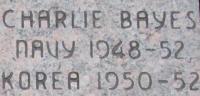 Charles C. Bayes served in the U.S. Navy from 1948 to 1952, including a stint in Korea from 1950 to 1952.