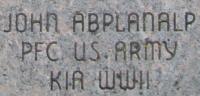 Private First Class John Abplanalp served in the U.S. Army during World War II and was killed in action (KIA) at ATTU, Alaska, on 29 May 1943.