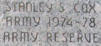 Stan Cox served in the U. S. Army from 1974 to 1978. After that he joined the Army National Guard and continues to serve. A brick in his honor is on the Liberty Side (Panel 14) as well as on the Eagle side (Panel 17A).