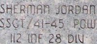 Staff Sergeant Sherman Jordan served in the U. S. Army in World War II from 1941 to 1945. His unit: the 112th Infantry, 28th Division. He was a POW.