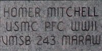 Private First Class Homer Mitchell served in the U.S. Marine Corps during World War II. He was a member of the Marine Scout Bombing Squadron 243 (VMSB-243), a dive bomber squadron in the Marine Corps. The Squadron, also known as the "Flying Goldbricks," fought in WWII during the Battle of Gougainville and later in the Philippines campaign (1944-1945).