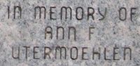 Brick honors memory of Ann Utermoehlen, by U. S. Air Force Colonel Cliff Utermoehlen.