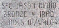 Sergeant First Class Jason H. Demo served in the U. S. Army for 20 years. Duty: He was an Artillery Scout, Operation Iraqi Freedom, three tours. SFC Demo earned a Bronze Star, and two Army Commendation Medals with Valor.