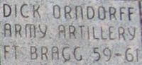 PFC Dick Orndorff served in the U. S. Army from 1959 to 1961. He was in the Artillery, and stationed at Ft. Bragg, KY.